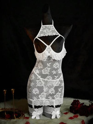 لانجيري حريمي SpicyHot 4 قطع/مجموعة فستان نوم نسائي بذيل ودانتيل مثير، مع حمالة صدر سلكية، للزفاف