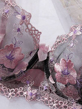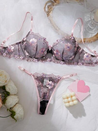 مجموعة ملابس داخلية للسيدات مطرزة بأزهار وردية لطيفة وجذابة