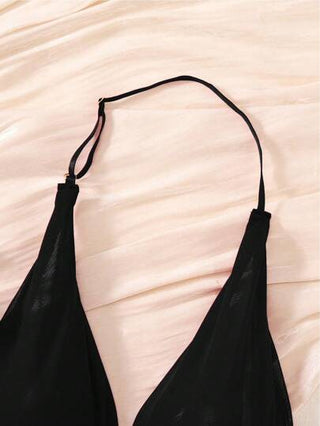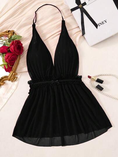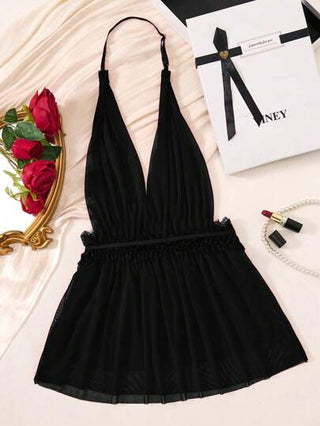 لانجيري حريمي فستان صيفي قطعة واحدة ، ثوب نوم شفاف منسوج ، ملابس داخلية مستوحاة من التصميم الإثاري ، رومبير مزين بتيدي بير بواسطة الرقبة الحالك ، حمالة مكشوفة الظهر بخط رقبة علي شكل حرف V منسوجة ، طقم ملابس داخلية كلاسيكي أسود إثاري
