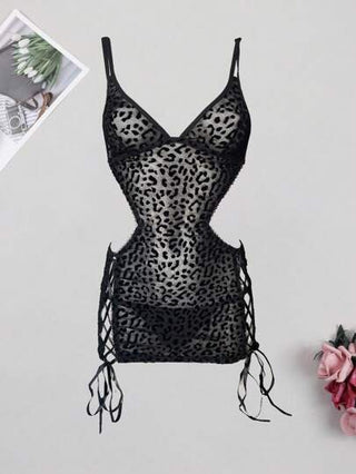 لانجيري حريمي قطعتان من الفستان الأنيق ذو الطبعة النمرية بتصميم خُلخَل للشاطئ والعطلات والمهرجانات الموسيقية وعيد الحب والاحتفالات والكرنفالات