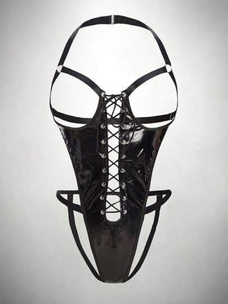 لانجيري حريمي AltCore بدلة قصيرة نسائية مثيرة مصممة خصيصًا من مظهر Y2K، مفرغة من الأعلى، حزام متقاطع، فتحة مفتوحة في الوسط من قماش بولي يوريثان متعدد الألوان