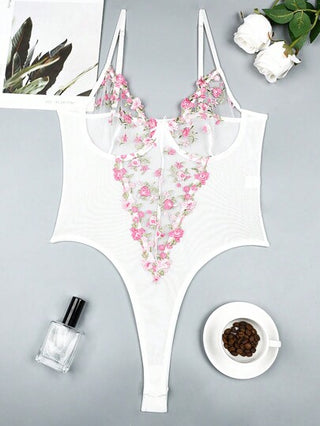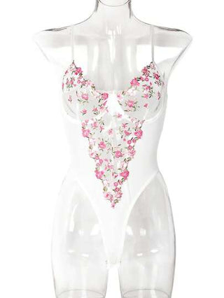 لانجيري حريمي جمبسوت طويلة للنساء مزينة بنقشات زهور مطرزة على شبكة قماش، ملابس داخلية نسائية جذابة