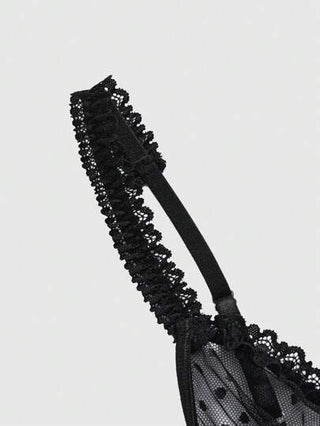 لانجيري حريمي ROMWE Goth قميص نوم بشكل غوطيكي من قماش الشباك مع حلقة فولاذية قطعة واحدة