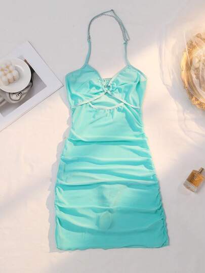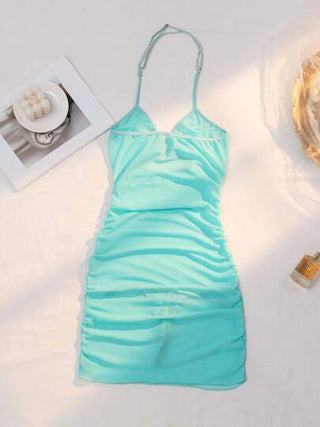 لانجيري حريمي طقم فستان منامة سادل مثير من القماش الشبكي الشفاف الرقيق، تصميم ظهر مفتوح، إغراء