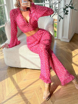 مجموعة ملابس داخلية جذابة للنساء مكونة من قطعتين مطبوعة بتصميم شبكي وديب-في