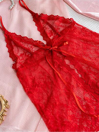 لانجيري حريمي 2 قطعة من الملابس النسائية المثيرة ذات حمالات السباغيتي والدانتيل ، قميص نوم بياقة سحيقة الرقبة مزين بفيونكة ، ملابس داخلية حميمية