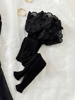 لانجيري حريمي مجموعة 3 قطع: جمبسوت شفافة على شكل V عميق مع تصميم شبكي متشابك + جوارب طويلة تصل إلى الفخذ، ملابس داخلية مثيرة للنساء