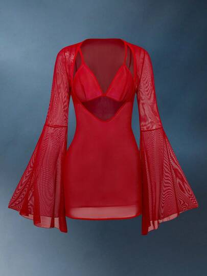 لانجيري حريمي Opulent Queen 2 قطعة من الملابس الداخلية النسائية المثيرة والشفافة والمفرغة مع أكمام على شكل خفاش وياقة على شكل حرف V العميق، بلون بورغندي، ثوب نوم للنساء لارتدائه في الأندية والحفلات والمهرجانات الموسيقية