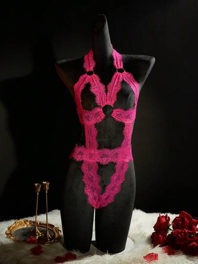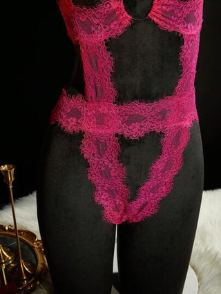 لانجيري حريمي SpicyHot بدلة ملابس داخلية نسائية فاخرة ، مثيرة بشكل كبير، من الدانتيل مقطعة في المنطقة الحساسة، ذات لون زهري فسفوري