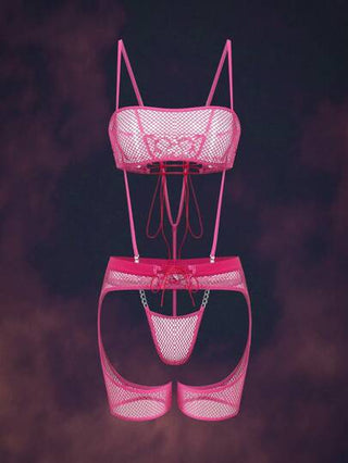 لانجيري حريمي AltCore مجموعة من 3 قطع جمبسوت كبيرة الفتحات مشبكة برباطات متقاطعة، بتفاصيل سلاسل معدنية، موضة عام 2000 ، جمبسوت نادي بحفلات عروسة عصرية للسيدات