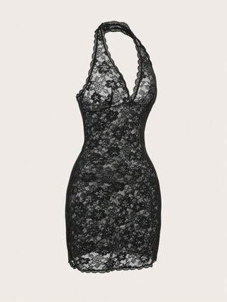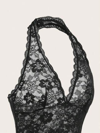 لانجيري حريمي SuitURBody ثوب نوم نسائي شفاف من الدانتيل بدون ظهر وبياقة واسعة مثير