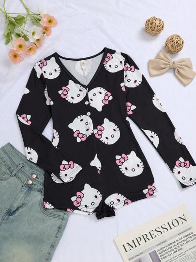 لانجيري حريمي 1 قطعة حللة نسائية ذات رقبة على شكل حرف "V" مطبوعة بأكمام طويلة نصف مفتوحة الأمام بخصائص جذابة'