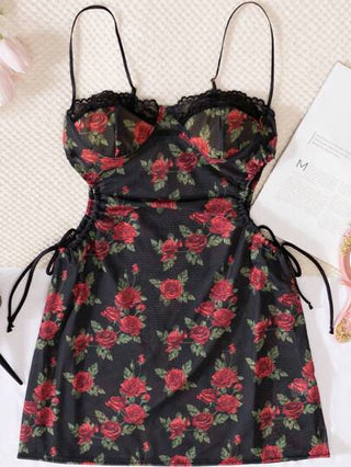 لانجيري حريمي فستان أكثر سمة قباطي سبور بطبعة أزهار كبيرة بحبل خصر، قابل للربط، أنيق للنوادي الليلية/الأعمال، قطعة مثيرة مع تشكيل بارز