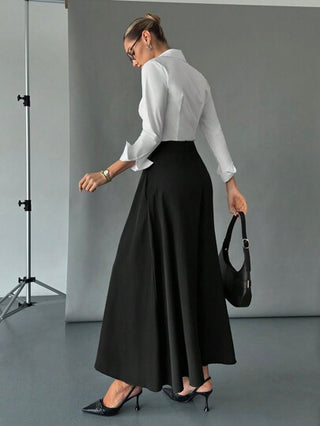 Siren Gaze تنورة بخصر عالي مبطن بجيب، إرملة كاجوال، سحاب ماكسي بنفوذ عادي خصر فائق الارتفاع، تنورة سوداء سادة للنساء، للربيع والخريف، للاستخدام اليومي الكاجوال، ملابس رمضان