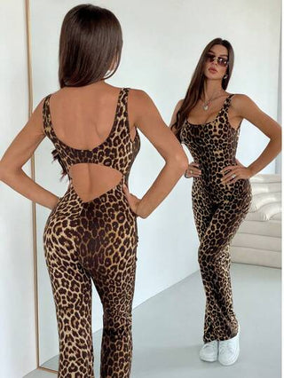 Siren Gaze جمبسوت نسائية ضيقة برسم فهد بأشرطة واسعة