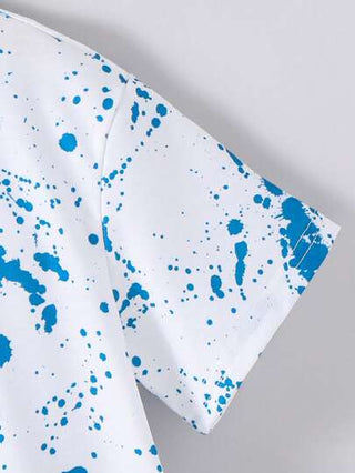 لانجيري حريمي مجموعة قطعتين من تيشرت أبيض مطبوع برسومات غرافيتي ، وشورت أسود فضفاض مناسبة للأولاد الصغار في فصلي الربيع والصيف، مناسبة للحياة اليومية والرياضة والحرم الجامعي والتجمعات والاحتفالات والأداء والتصوير والعودة إلى المدرسة