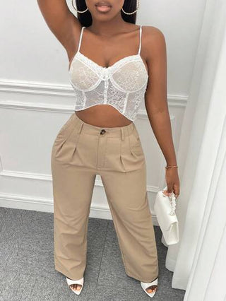 Slaydiva بنطلون بساق مستقيم موحدة اللون جيب مائل