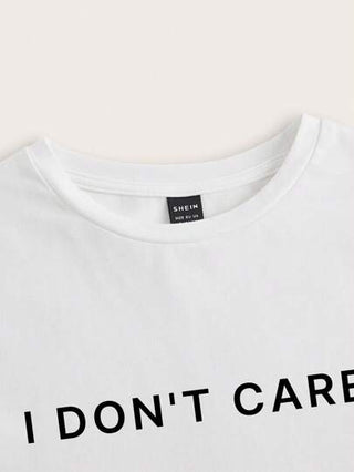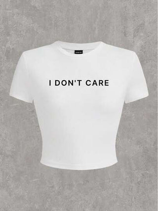 Slaydiva تي شيرت نسائي مضغوط قصير الأكمام ذو رقبة دائرية ذو طباعة "لا أهتم" ، بخلطة قطن مناسبة للصيف ، تصميم بسيط وكاجوال