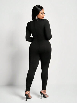 Slaydiva جمبسوت نسائية طويلة الأكمام ضيقة جديدة وجذابة مع تفاصيل ماسية، قلب، وشبكي بياقة ضيقة