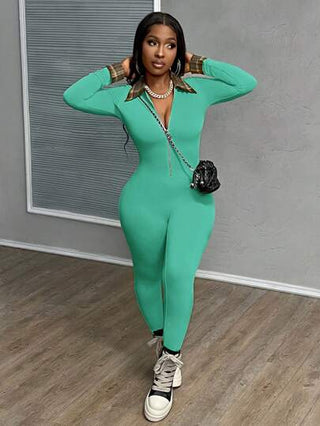 Slaydiva طقم بدلة رياضية مريحة وشاملة، ياقة وأساور ملونة بألوان متباينة، إغلاق بسحاب، جاكيت كم طويل وبنطلون ضيق، للنساء ، خريف/شتاء