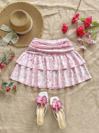 Soleia تنورة صيفية منقوشة بطبعات الأزهار بخصر عالي والكشكشة المتداخلة، مناسبة للحديقة الخلفية والمواعيد وشرب الشاي بعد الظهر والعطلات وموسيقى المهرجانات والزي البوهيمي