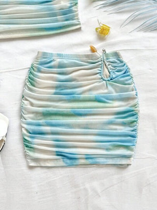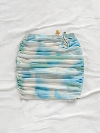 Soleia تنورة قصيرة جديدة بتصميم شبكة مضفرة، الإطار المعدني، خصر منخفض، طيات في الذيل