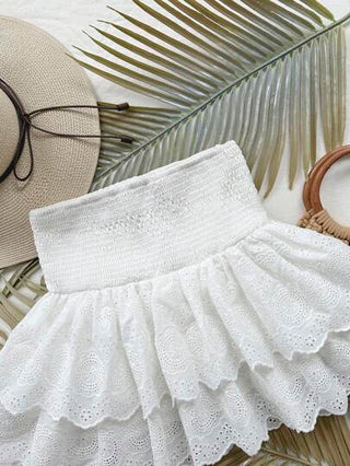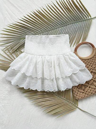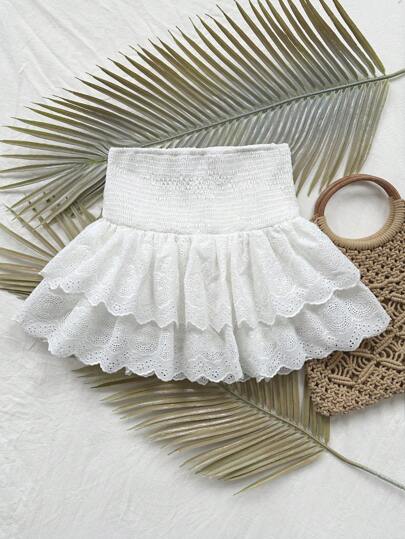 Soleia تنورة ميني مثنية مطرزة بتصميم زهري رومانسي للنساء، مثالية للعطلات والحفلات
