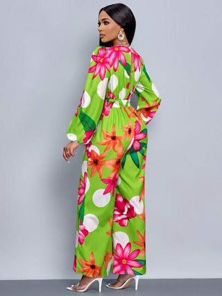 SOLERSUN جمبسوت عريضة الساق بأكمام فانوس مطبوعة بطباعة أنيقة متداولة للارتداء اليومي