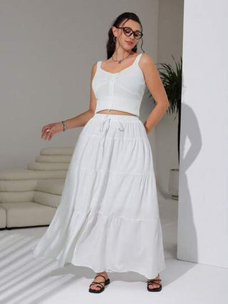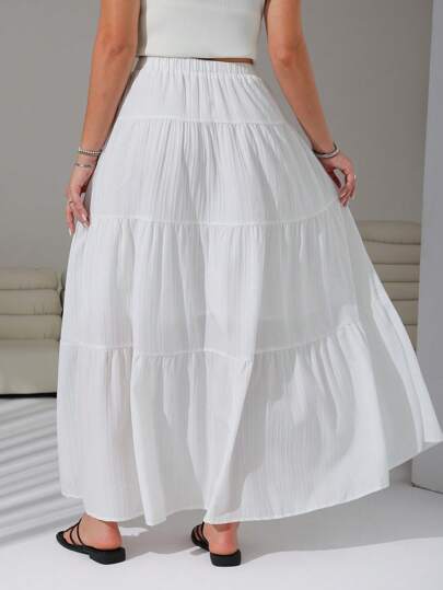 Solflare تنورة طويلة بيضاء كاجوال مقاس كبير، الربيع والخريف