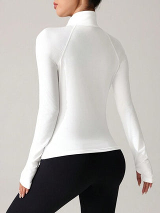 Sport Studio سويت شيرت أبيض قصير الياقة مزود بسحاب طويل الأكمام قصة ضيقة
