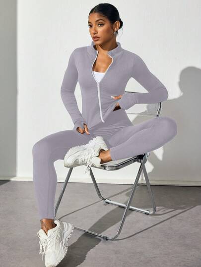 Sport Studio طقم رياضي للنساء من بنطلون وبلوزة طويلة الأكمام مطابقة اللون وذات سحاب