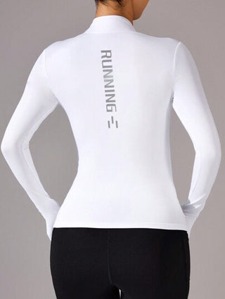 Sport Studio قميص ثقيل رياضي بياقة واقفة وتصميم ضيق، قماش ناعم وقابل للتنفس بطبعة أحرف
