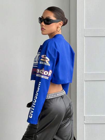 StreetHx جاكيت قصيرة للنساء بطراز الدراجات النارية، بطباعة الحرف، لارتداء الشوارع