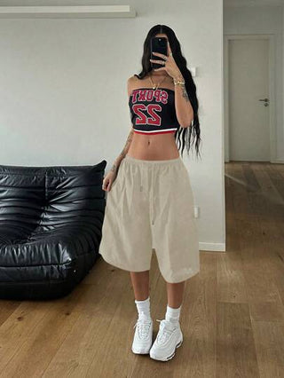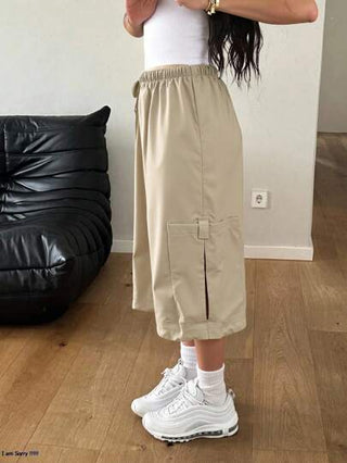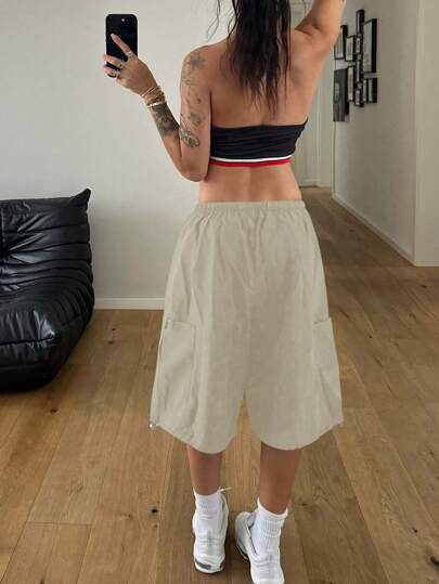 StreetHx شورت كاجوال للنساء بخصر مطاطي وجيوب للربيع باللون الأحادي