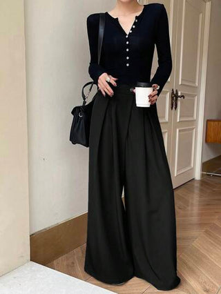 Strévra سراويل نسائية ذات خصر عالي بتصميم واسع الساق مطوية مزودة بجيوب، موضة 2000