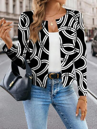Studio sunshine جاكيت عمل للسيدات بتصميم فني عفوي بسيط مخطط باللبن الأسود والأبيض، مناسبة للصيف والعطلات والسنة الجديدة والخروجات والإجازات