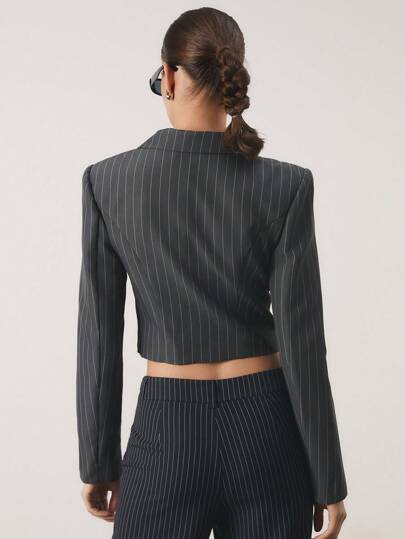 SURIMA بليزر/جاكيت نسائي ذو ياقة عريضة مخطط، أكمام طويلة، للاستخدام اليومي أو المكتبي