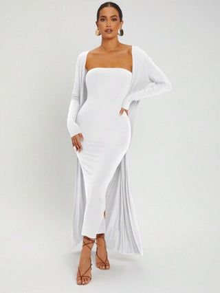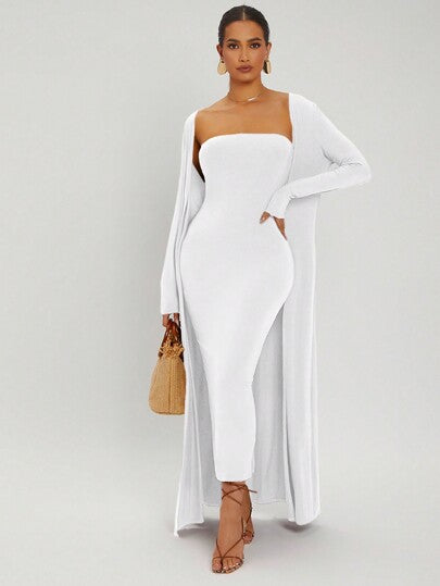 طقم حريمي قطعتين Radiana مجموعة ثوبين نسائيين: معطف شال بسيط بلون سادة للاستخدام اليومي وثوب باندو