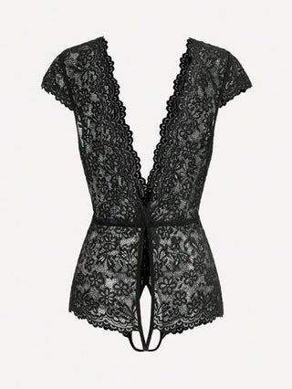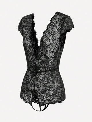 لانجيري حريمي Classic Sexy بدلة داخلية براقة دون عانة ذات زخرفة دانتيل منقوشة بالأزهار