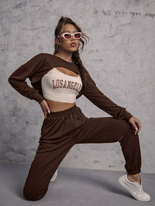 طقم حريمي قطعتين Flirla قصير سوبر بلوفر و بطباعة أحرف لباس علوي تانك