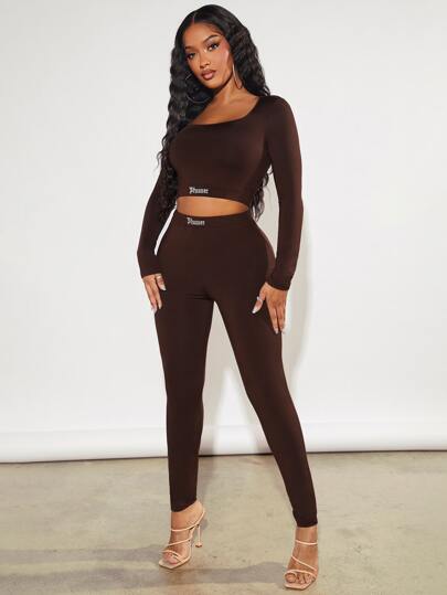 طقم حريمي قطعتين Radiana تي شيرت قصير بطباعة أحرف و طماق