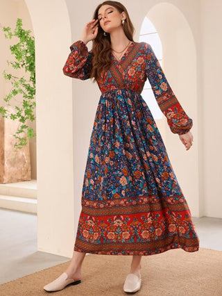 فساتين حريمي Mulvari فستان بطبعة زهور على شكل A-Line ذو ياقة على شكل V للنساء