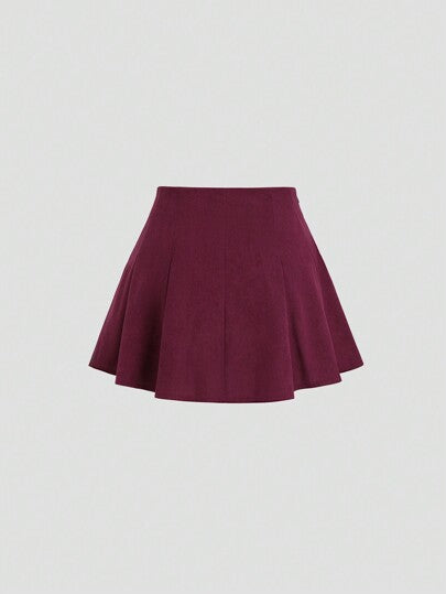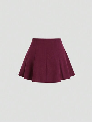Sweetra تنورة وسط إناث ذات أسلوب متعدد الاستخدامات، كورية لون سادة مظهر رشيق وعذب للشباب، إنيقة بقصة الحرف A قصيرة باللون البوردو، للربيع/الصيف
