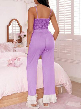 SweetSlumber طقم بيجامة نسائي مكون من بذلة ملائمة مصنوعة من ألوان متباينة بتصميم وردي كبير وكسرات من الشريط الدانتيل والخصر المزين بعقدة فرنسية