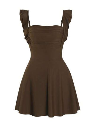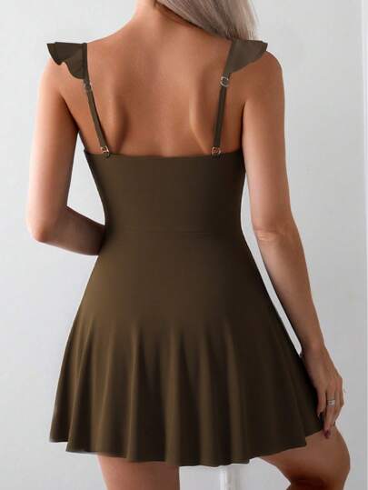 Swim Mod بذلة سباحة قطعة واحدة للنساء بياقة مربعة متموجة مع شورت ذو موحد اللون