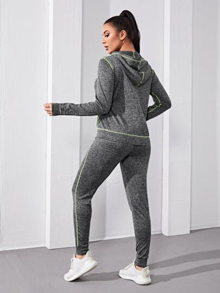 SHEIN Sport Studio بلوفر رياضي فتحة رأس برسومات الغرز باللون الرمادي الغامق، مجموعة ملابس رياضية للنساء (بلوفر رياضي وبنطلون) بتفاصيل الغرز، دعوة للتمرينات والحركة
