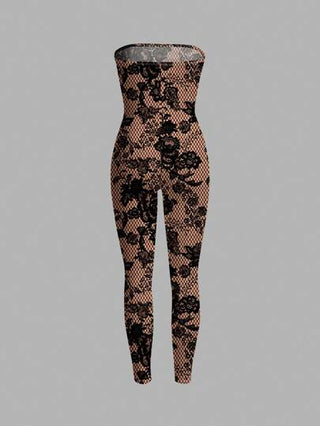 SXY بنطلون قطعة واحدة مقلم بالدانتيل بتصميم بسيط وعادي