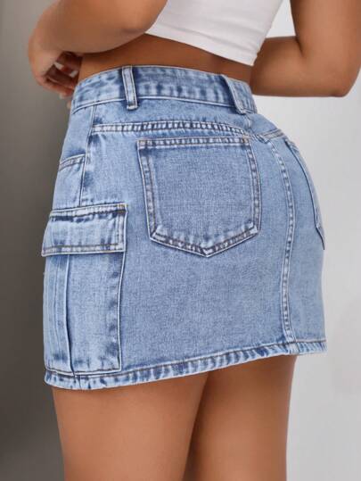 SXY تنورة جينز عرضة للجيوب مثالية للسيدات في العمل