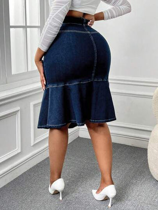 SXY تنورة دنيم حافة حورية البحر مقاس كبير