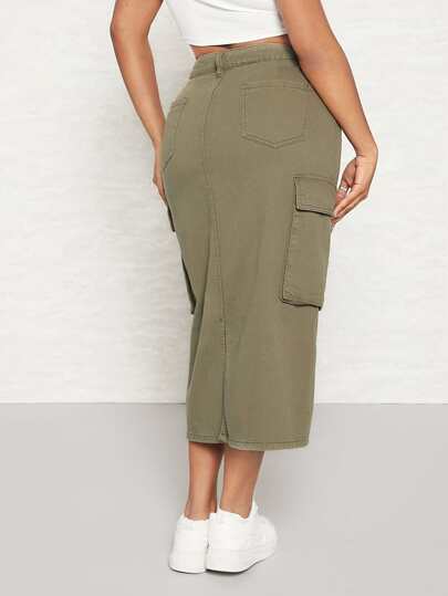 SXY تنورة دنيم خصر عالي جيب قلاب
